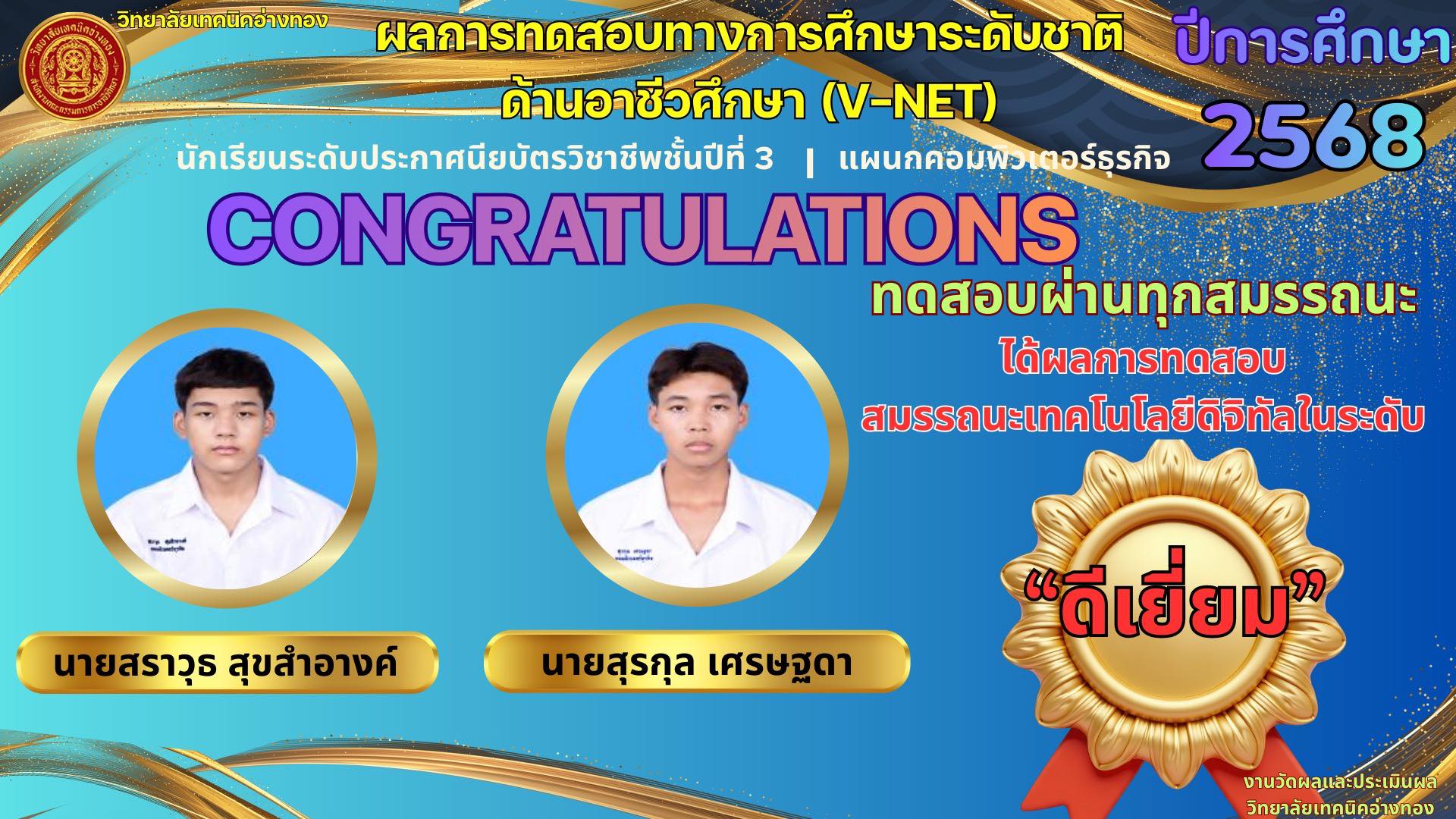 ที่มีผลการทดสอบทางการศึกษาระดับชาติ ด้านอาชีวศึกษา (V-NET) ประจำปีการศึกษา 2568