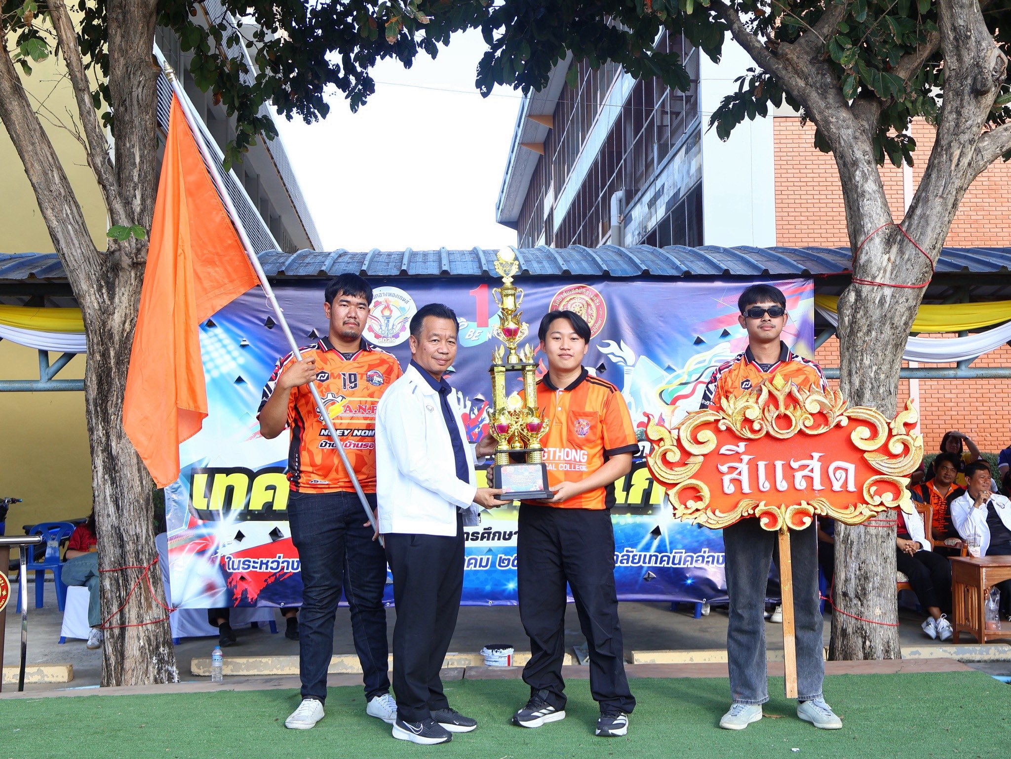 วันพุธที่ 17 ธันวาคม 2568 วิทยาลัยเทคนิคอ่างทอง ได้จัดพิธีปิดการแข่งขันกีฬาภายใน “เทคนิคอ่างทองเกมส์ 2025” ประจำปีการศึกษา 2568 ณ สนามกีฬาวิทยาลัยเทคนิคอ่างทอง โดยได้รับเกียรติจาก ดร.ไพฑูรย์ สังข์สวัสดิ์ ผู้อำนวยการวิทยาลัยเทคนิคอ่างทอง เป็นประธานในพิธี พร้อมด้วย นายณัฐพงษ์ ขุดโพธิ์ ครูแผนกวิชาสามัญสัมพันธ์ (หมวดวิชาพลศึกษา) กล่าวรายงานสรุปผลการแข่งขัน