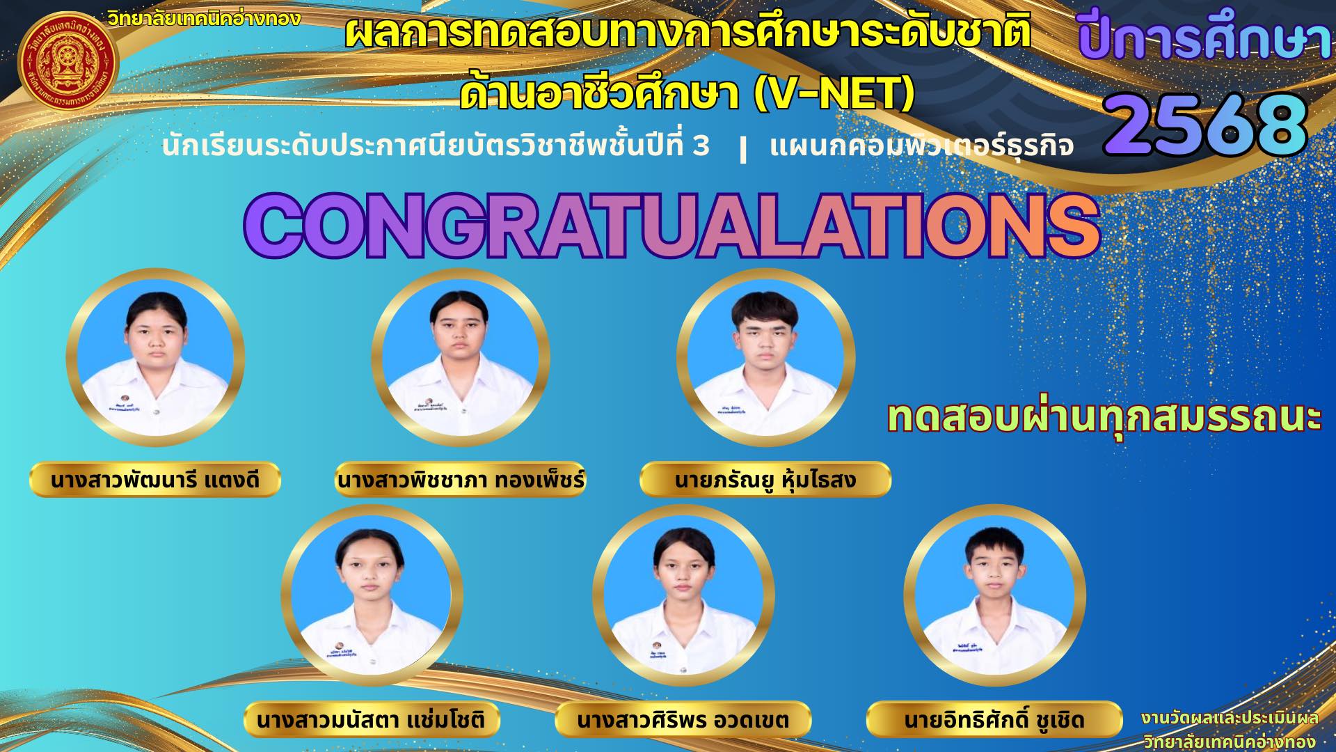 วิทยาลัยเทคนิคอ่างทอง ขอแสดงความยินดี กับนักเรียนระดับประกาศนียบัตรวิชาชีพ (ปวช.) ชั้นปีที่ 3 แผนกวิชาคอมพิวเตอร์ธุรกิจ วิทยาลัยเทคนิคอ่างทอง